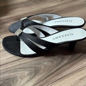 Step out in style with these elegant black sandals from Gallery. Featuring a chic rhinestone accent, these shoes are perfect for any occasion.
