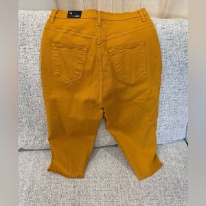 Distressed Mustard Yellow Bermuda Capris