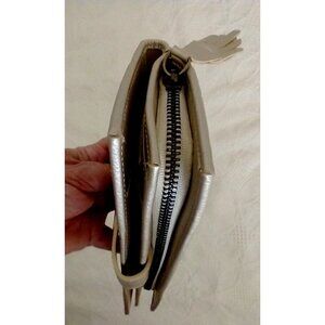 Wallet Bi-Fold Women's VELEZ Leather Organizer Clutch Purse Matte Gold Finish - 8"x4"x1"