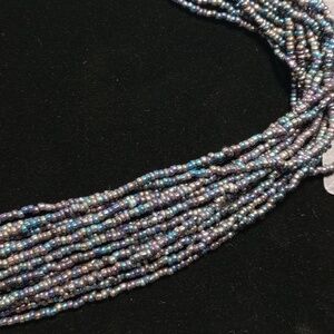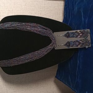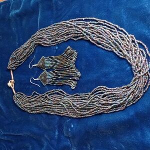 Multi-strand Iridescent Seed Bead Necklace And Matching Fringe Earrings
