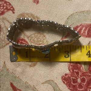 Elegant silver bracelet featuring intricate designs and a striking blue stone centerpiece. Perfect for adding a touch of sophistication.