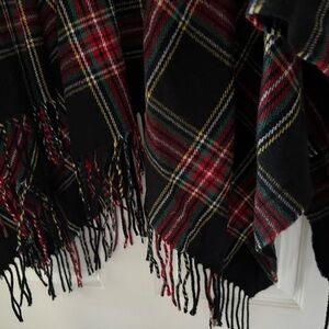 J. Crew Black and Red Plaid Poncho with Faux Fur