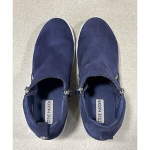 Steve Madden Silya Wedgie High Top Blue Suede Sneaker Women’s 9.5 Side Zippers