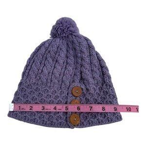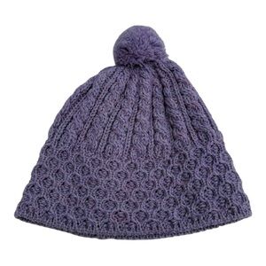 Aran Shrule Merino Wool Knit Pattern Hat with Pom Pom - Lavender