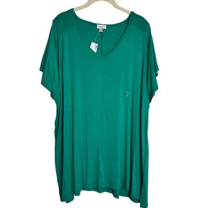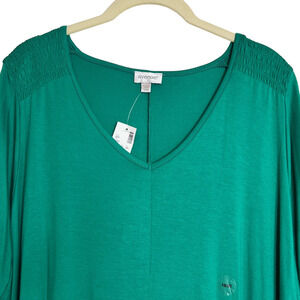 Avenue Womens A-Line Tunic Size 18/20 Green Short Sleeve Smocked Shoulders New