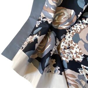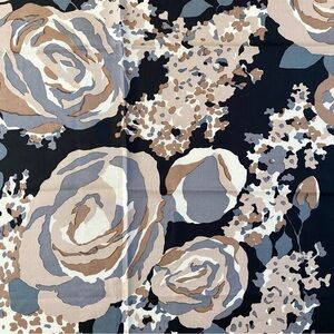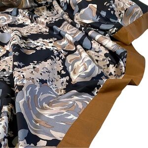 —Beautiful floral print with warm, rich colors set against a black background along with a 2” border of different colors.