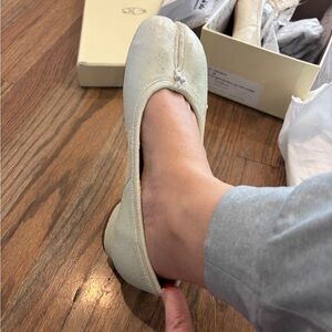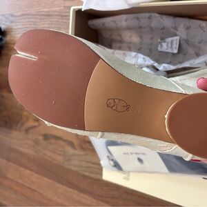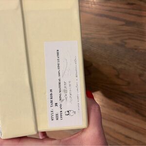 Cream knife cut leather beauties. They are a size 38 which I feel is a true size 8. I’m a 7.5 and too big for me.