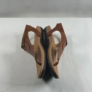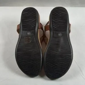 Women’s Brown Comfort T-Strap Sandals Soft Footbed Slip-On Thong Shoes Size 38