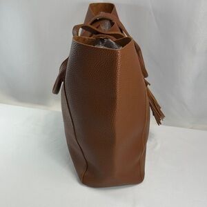 Elevate your style with this brown leather tote, featuring a stylish tassel. Perfect for any occasion or gateway weekender bag.