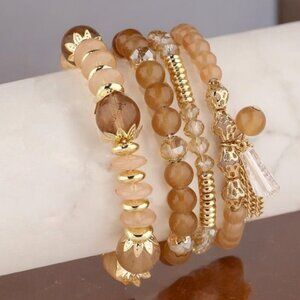 Add a touch of boho-chic elegance to your look with this stunning 4-piece beaded bracelet stack! Featuring warm brown crystal beads, gold accents, and agate stones, each bracelet blends perfectly for a layered, effortless vibe.