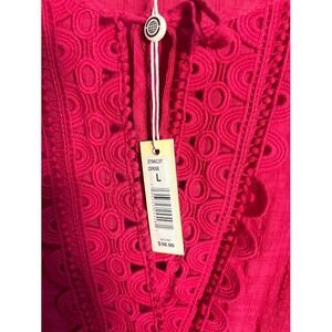 MAX STUDIO Cerise Pink Lace Trim Peasant Blouse Top Womens Large L NWT