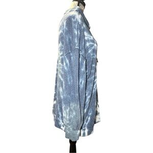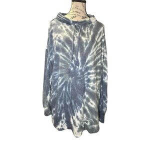 Embrace a casual yet stylish look with this tie-dye free people top. Drawstring funnel neck. Drop shoulders, long sleeves. Banded cuffs and hem. Allover exposed seams. Tie-dye pattern.