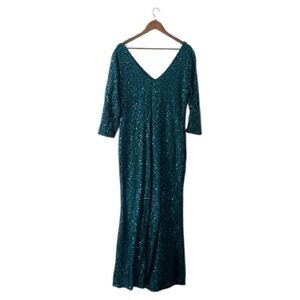 Marina Teal Lace Sparkle Sequin Long Sleeve Maxi Dress Mother Bride Groom Sz 16