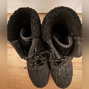 Stylish black winter boots with cozy fur lining. Perfect for cold weather.