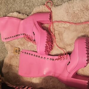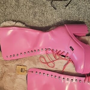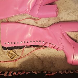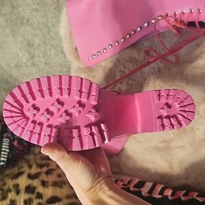 brand new unworn barbie pink size 37. I purchased these and they came with slight scuffs on both boots. paid over $220 plus tax for these. I did not attempt to remove the scuffs since im moving and just need to downsize immediately.