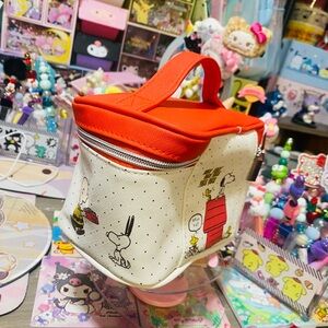NWOT. Faux leather makeup bag with handle and inside pockets and inside optional separator.
