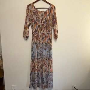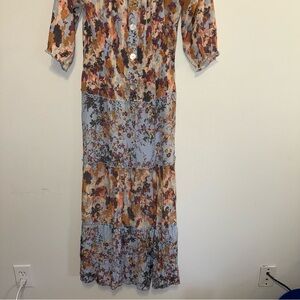 Anthropologie Fig and Flower Maxi Dress Floral Boho Button Front Floral Print L