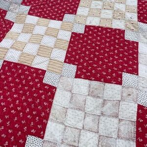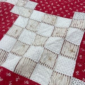 Antique Patchwork Red Calico Quilt Blanket 1800s Distressed
