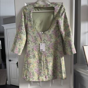 Step out in style with this elegant floral mini dress. Featuring a beautiful blend of green and pink, this dress is perfect for any occasion.