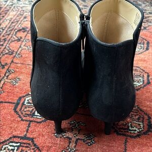 Chic black ankle booties with side zippers. Sleek and versatile design. Very cute short heels. Size 8.5 M. New with Tags!