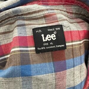 Lee Men's Red Blue Plaid Button Down Front Long Sleeve Collared Shirt XL Western