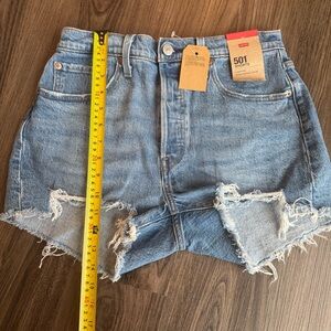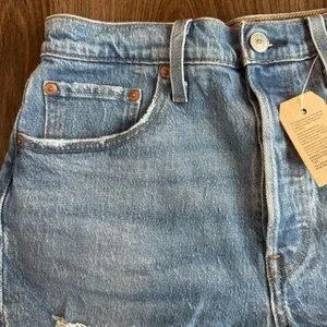 Trendy Levi's jean shorts with a distressed look. Light blue denim. Perfect for casual wear. NWT