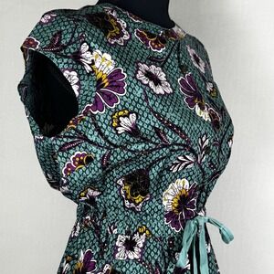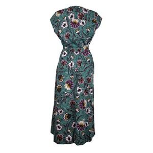LOFT Women's Floral Utility Midi Shirt Dress Size 4 Tie Waist Pockets Teal Blue