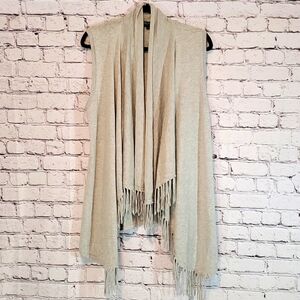 Central Park West Gray Sleeveless Cardigan Fringe Size M EUC