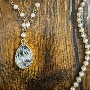 Mother of Pearl Necklace w/ Pendant & Matching Dangle Earrings, Boho, Layered