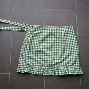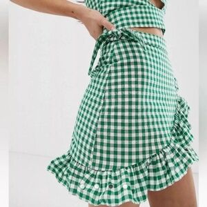 Glamorous Petite Wrap Mini Skirt Green Gingham Sz10 Spring Summer Ruffle Hem Med