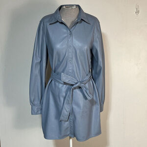 Wilfred Caroline Dress Women's Medium Button Down Blue Belted Vegan Leather