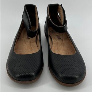 Clarks Medora Nina black leather ankle strap flats cushioned OrthoLite Women's 7