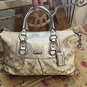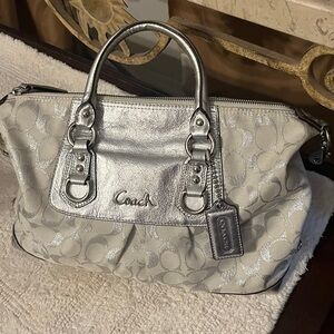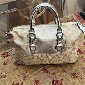 Coach Metallic Silver and cream Satchel with longer shoulder strap option