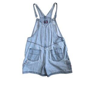 Looney Tunes Tweety Bird Distressed Denim Overall Shorts 90s–Y2K Size XL Vintage