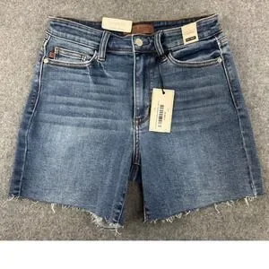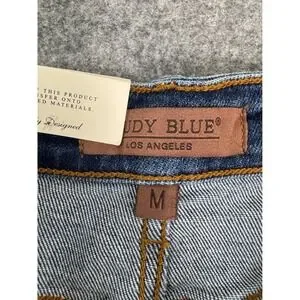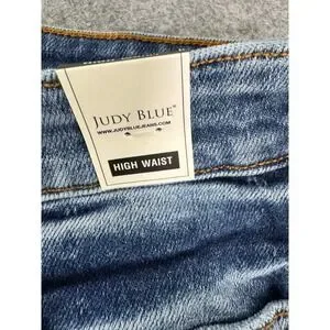 Keywords: Judy Blue Jeans, denim shorts, high waisted, distressed, raw hem, medium wash, summer shorts, casual, festival wear, beachwear, streetwear, everyday wear, shorts