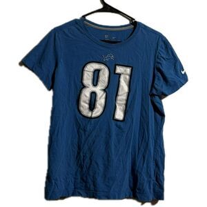 This NFL jersey in a striking blue color features a vintage-style number '81' on the front, adding a touch of classic sports appeal. Made from a soft, cotton-like fabric, it offers a relaxed fit for everyday comfort. The slightly distressed design enhances its casual, lived-in look, perfect for any sports enthusiast.