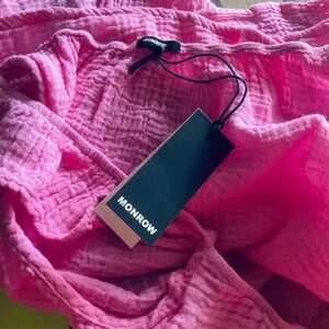 Monrow Pink Crinkle Gauze Ruffle Tank Top NWT