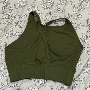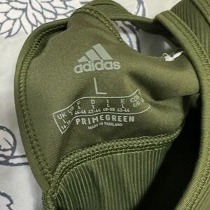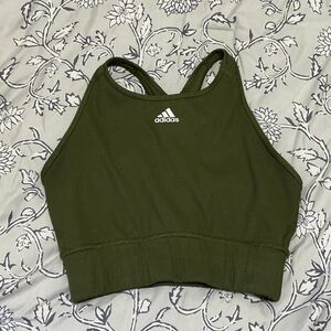 Olive green sports top with iconic Adidas logo. Ideal for active wear. Great condition