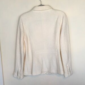Soft cream teddy jacket with button closure. Features two front pockets. Perfect for layering.
