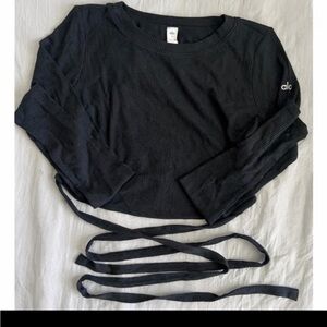 ALO Yoga Black Long Sleeve Strappy Crop Top