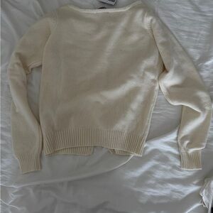 Chic cream cardigan with button-up front. Soft and stylish for versatile wear.