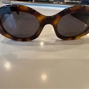 Celine oval sunglasses with a classic brown tortoise shell pattern. Case and cloth included.