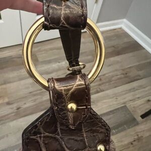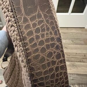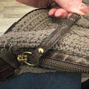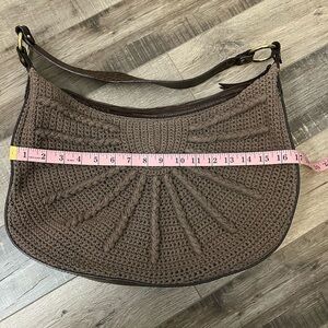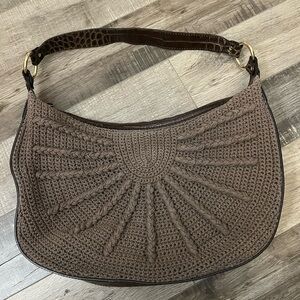 Stunning brown crochet hobo bag with sunburst pattern. Made in Italy, St John quality craftsmanship!! Excellent condition - one scratch on bottom - see photo.