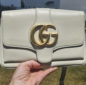 Beautiful condition on this beautiful cream colored Gucci with pink lined interior.