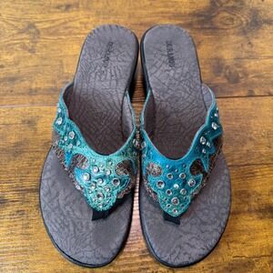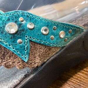 DURANGO Turquoise Rhinestone Embellished Wedge Sandals Size 9 Western Bling Boho