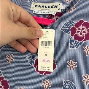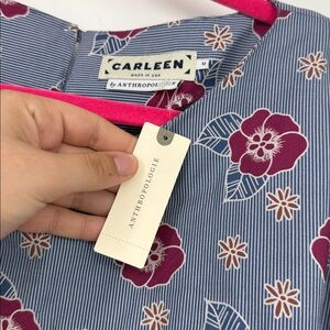 New with tags Anthropologie Carleen Floral Tunic Dress Medium HTF Blue White Pockets!! 100% Cotton.