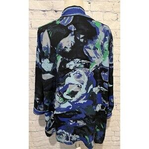 The Bob Mackie Watercolor Rose Printed Kimono Cardigan in Periwinkle is a stylish and elegant piece perfect for women in size XL. Made of polyester with a floral pattern, this kimono cardigan exudes a classic and feminine style. The vibrant periwinkle color adds a pop of color to any outfit, making it a versatile and on-trend addition to any wardrobe. 25 inches pit to pit and 31 inches long. Smoke free home.