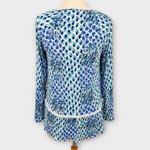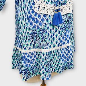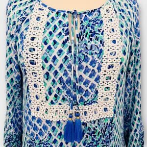 Lilly Pulitzer Amisa Resort Blue White Tunic Top Size S Crochet Lace Trim Blouse