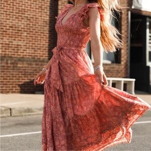 Cleobella Rita Ankle Dress Smocked Floral Tiered Size Small Organic Cotton NWOT