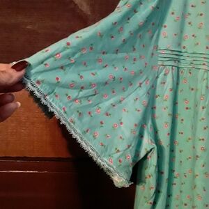 NWOT 4X 34/36 Dreams & Co feminine and beautiful blue floral short sleeve nightgown. This is truly a beautiful nightgown the lace accents make it so feminine. The little ruffle at the bottom just adds to it.